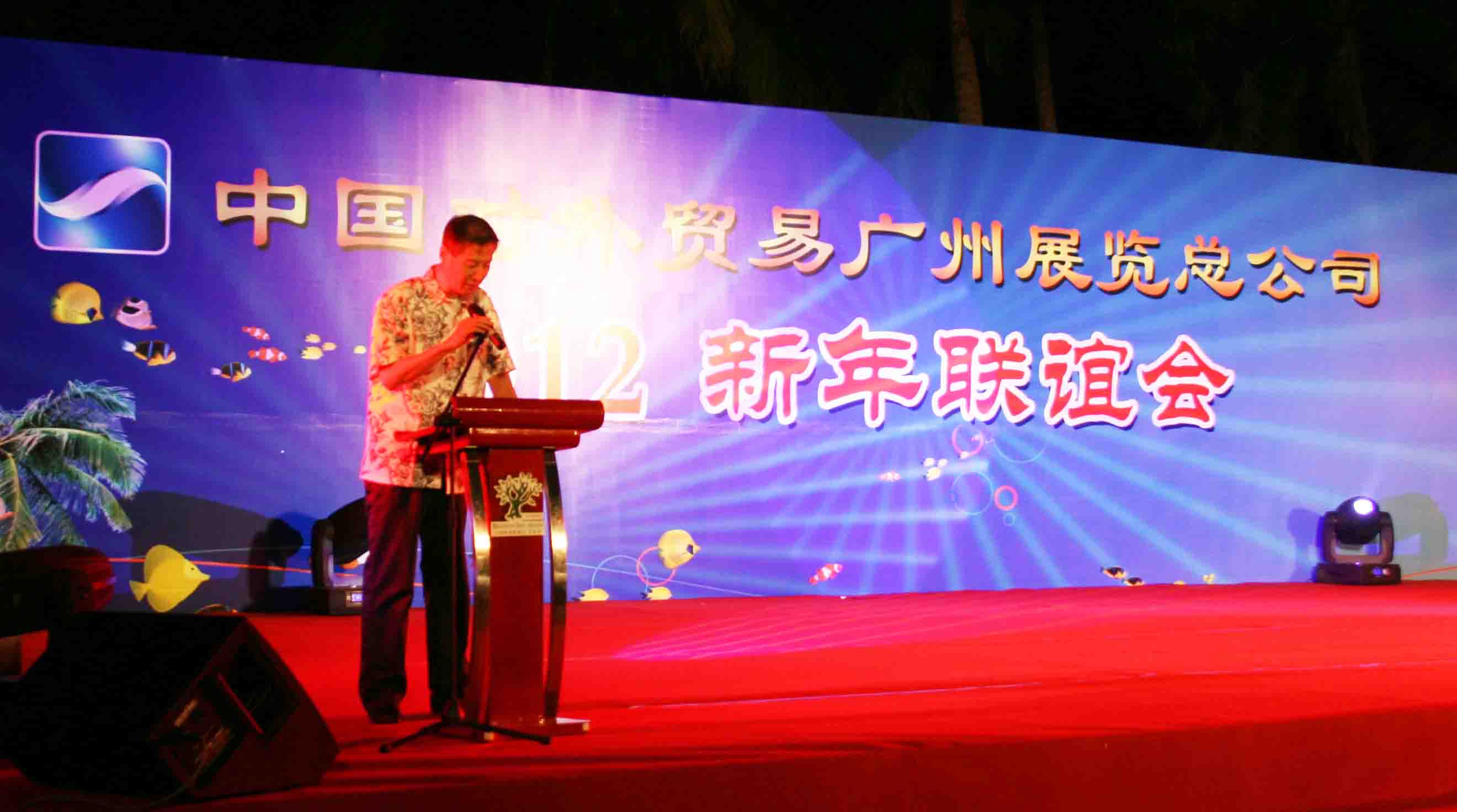 2011年12月27日,滿懷感激、感恩、感謝之情,展覽總公司與近百名嘉賓在美麗的三亞亞龍灣舉行主題為“答謝?迎新”的客戶聯(lián)誼會(huì),共同迎接生機(jī)盎然的龍年。海南省商務(wù)廳廳長(zhǎng)葉章和、商務(wù)部服務(wù)貿(mào)易司副司長(zhǎng)呂繼堅(jiān)、中國(guó)對(duì)外貿(mào)易中心主任王志平及中國(guó)對(duì)外貿(mào)易廣州展覽總公司總經(jīng)理李德穎分別在此次活動(dòng)中致辭,他們紛紛肯定展覽總公司在2011年取得的成績(jī),同時(shí)祝愿在新一年里展覽總公司與各界友人共同進(jìn)步,邁進(jìn)新的輝煌。
