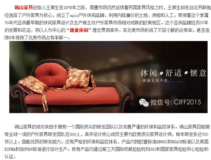 第36屆上海虹橋家具展:錫山家具-37年醞釀戶外休閑大師