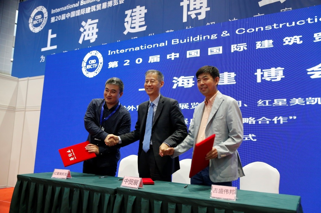 展覽開幕發(fā)布會(huì)還舉行了中國(guó)對(duì)外貿(mào)易廣州展覽總公司與紅星美凱龍、吉盛偉邦、浙江省門業(yè)協(xié)會(huì)等相關(guān)單位的合作簽約儀式。